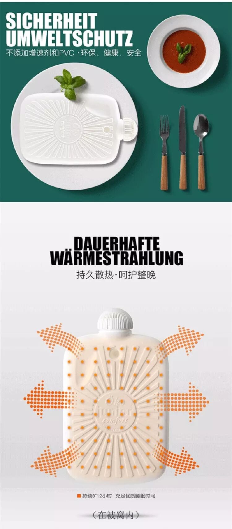 我们传统的热水袋材质无非是橡胶或者PVC的,一加入热水就有种浓浓的塑胶味,刺鼻难闻。