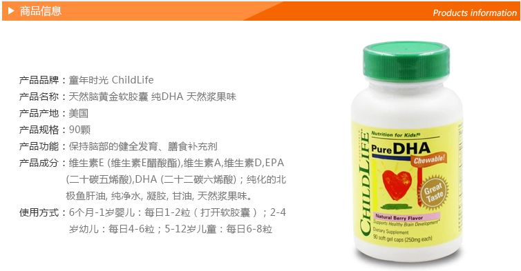 Childlife精纯DHA咀嚼胶囊,更精纯,满足婴幼儿需求,让宝宝更加聪明,更加健康。