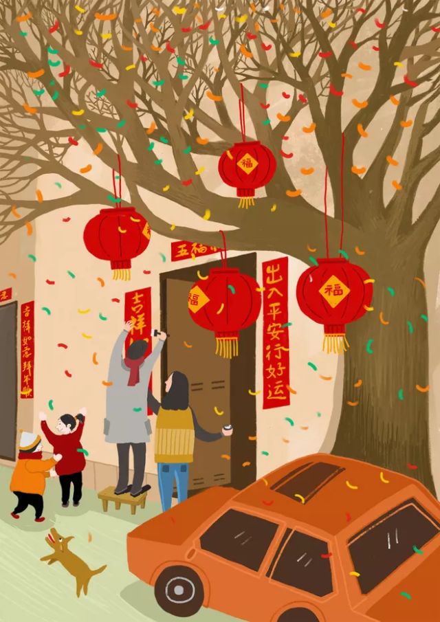 买新衣、置年货、大扫除、放鞭炮、合家欢