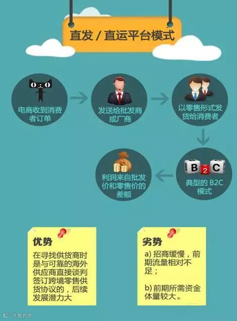 直发/直运模式在寻找供货商时是与可靠的海外供应商直接谈判签订跨境零售供货协议的;为了解决跨境物流环节的问题,这类电商会选择自建国际物流系统(如洋码头)或者和特定国家的邮政、物流系统达成战略合作关系(如天猫国际)。
