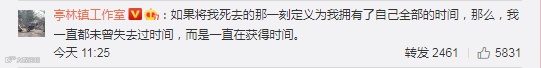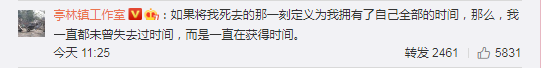 “但对人而言,沙粒不断坠落的过程就象征着光阴的流逝,但也不能单单认为这是自己的失去。如果将我出生的那一刻定义为拥有全部时间的话,时光确实从我手中流逝了;但如果将我死去的那一刻定义为我拥有了自己全部时间的话,那么,我一直都未曾失去过时间,而是一直在获取时间。”
