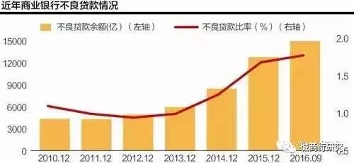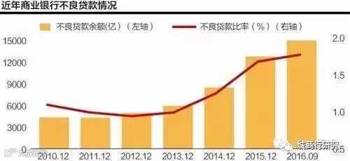 银监会的数据显示,截至2016年9月末,商业银行不良贷款余额为1.49万亿,相比2015年末增加2195亿;9月末商业银行不良贷款率为1.76%,相比2015年末增加0.09个百分点。