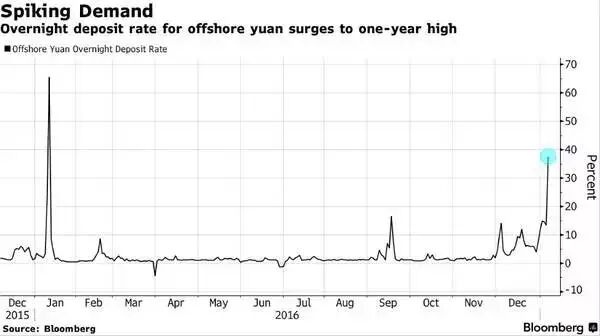 现在的人民币空头赌央行在2017年初将人民币大贬值,并偷偷建了大量的仓位,结果中国反其道而行之,不但没有将人民币汇率在年初大贬值,反而大大加强了外汇管制。并在离岸市场大大回收人民币流动性,导致人民币空头的做空成本急剧上升,无处拆借人民币。