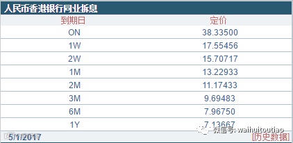 今天,香港隔夜人民币银行同业拆息利率定价较前一交易日暴涨2139个基点至38.335%,创自2016年1月12日以来新高。