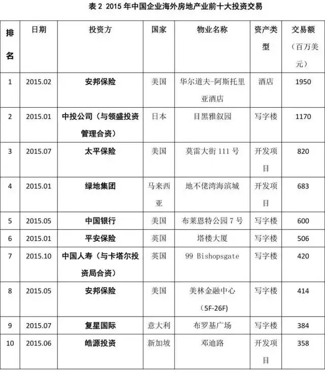 其次,投资海外房地产业占比12%。2015年中国企业投资海外房地产业大放异彩,不断收购海外地标性建筑(如表2)。
