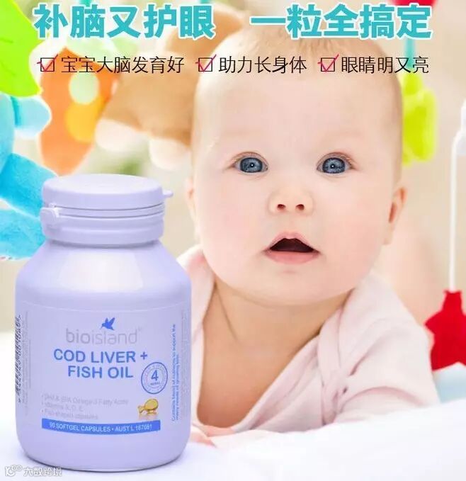 Bio Island 佰澳朗德 婴幼儿鳕鱼肝油胶囊 90粒 宝宝鱼肝油,Bio Island鳕鱼肝油选用极地深海鳕鱼为原料,营养价值高,是宝宝补充DHA、EPA的优质之选。鱼肝油含有维生素A和D,能促进宝宝的眼部发育和钙的吸收。四周以上的宝宝就推荐开始服用鱼肝油了哦~