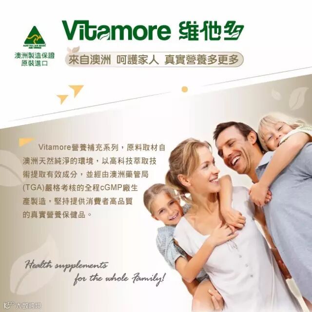 Vitamore 维他多营养保健品系列是Nature’s Care旗下的保健品牌,秉持着「提供更多(more)有益的营养素(Vita)的理念而开发了一系列的商品 我们选用大地最珍贵、天然有机的新鲜原料,聘请生计学家及营养师,在国家级实验室中,透过不同规模的试验,确保产品质量温和,安全没有任何污染,成分足量也易于被人体吸收。 所有产品保证100% 澳洲原厂制造,并通过澳洲药物管理局(TGA)注册核可,以制药等级的水平生产出的优质保健品。