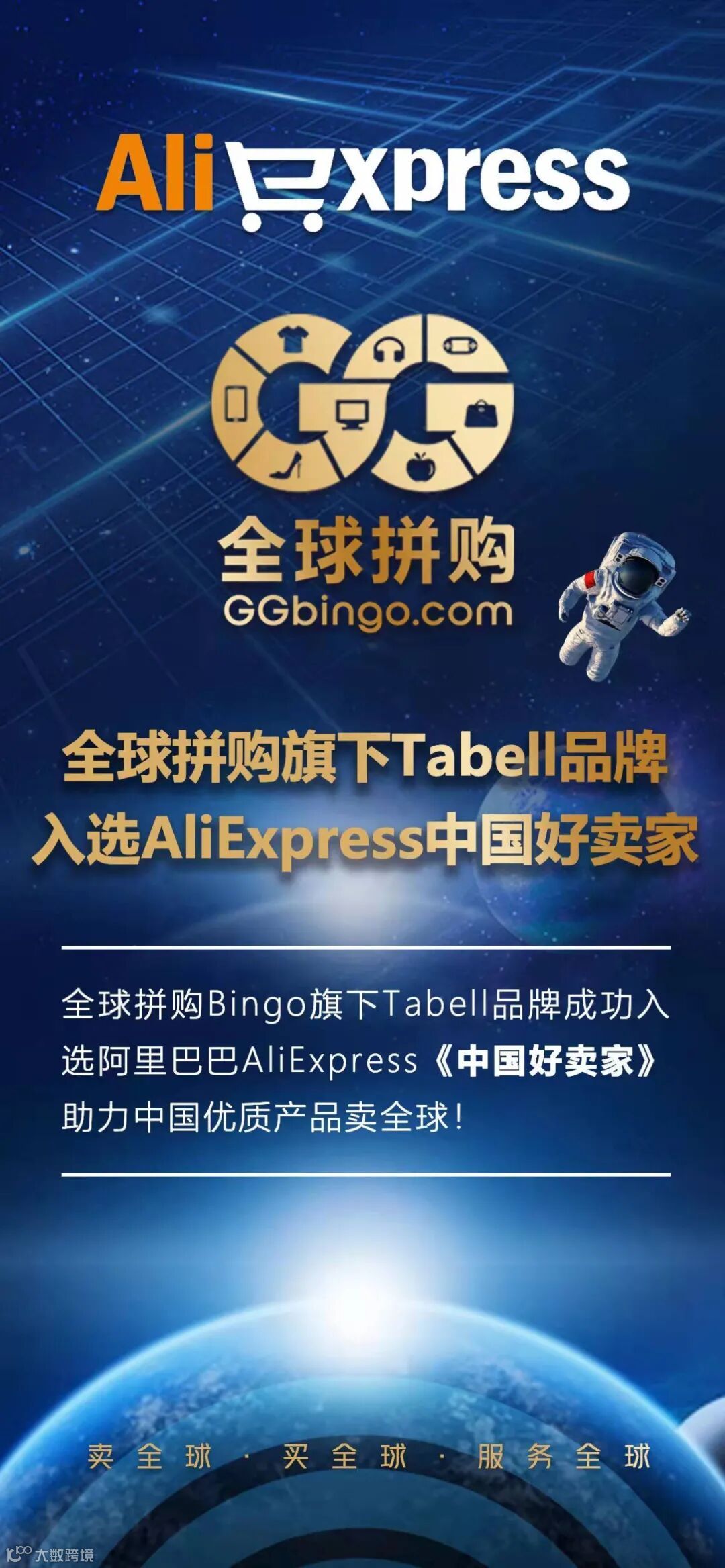 4月1日,全球拼购Bingo旗下Tabell品牌成功入选阿里巴巴AliExpress 《中国好卖家》,助力中国优质产品卖全球!