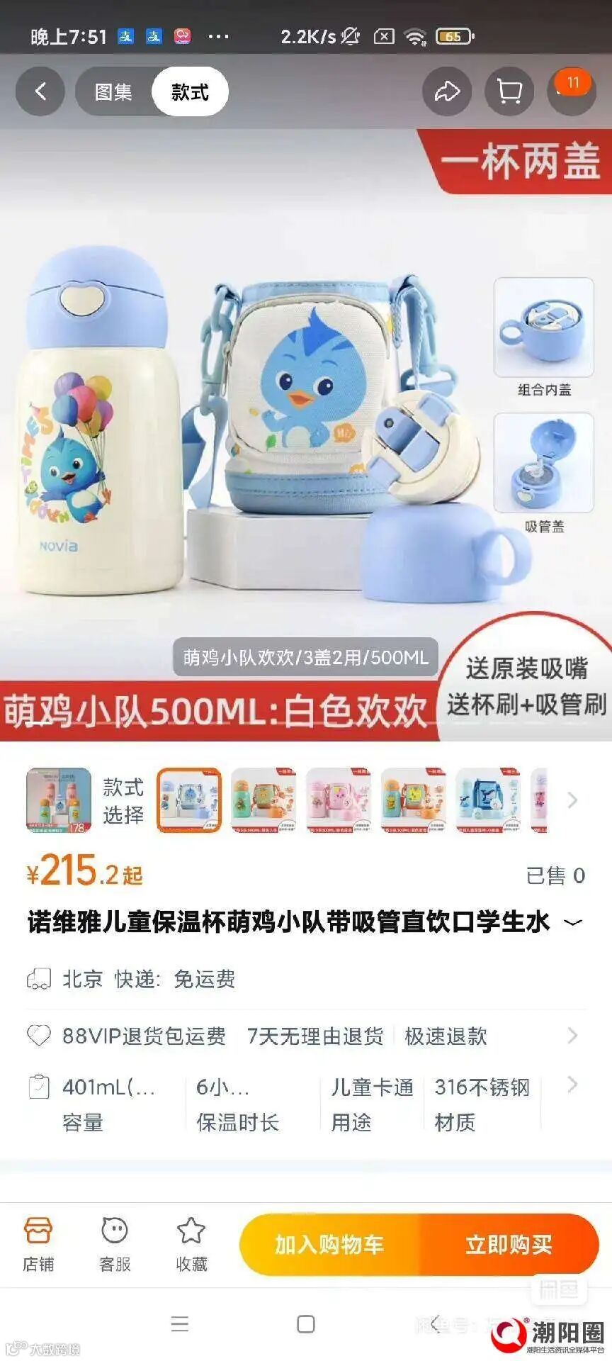 详细 : 全新诺维雅novia儿童保温杯萌鸡小队带吸管直饮口学生水壶。带背带,说明书,一杯两盖,500ml,原价两百多,保温性能贼好。