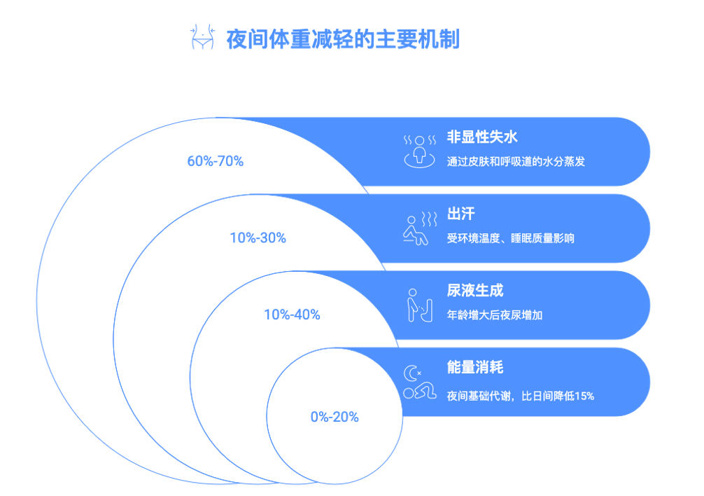 首先可以明确的是,健康成人夜间体重减少通常在 0.3-1 公斤之间,这个变化不是凭空出现的,而是基础代谢、水分平衡等多种生理过程共同作用的结果。具体可以拆成这几个关键部分: