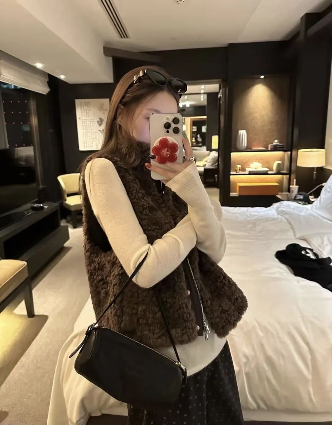 🍒推荐理由:通勤党直接抄作业!高密羊羔毛马甲保暖不臃肿,堪称冬天的叠穿万金油单品,内里奥利绒里衬,双重保暖🔥颜色是秋冬刚需的奶白色和咖色,温柔又耐看!