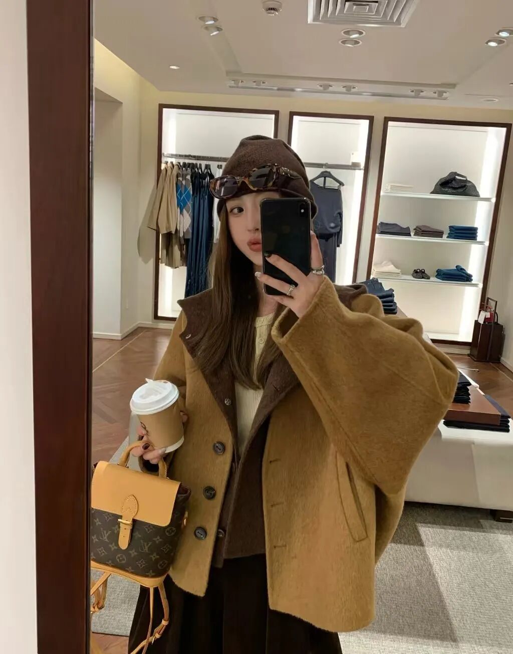 🍒樱桃四星🌟【南瓜色+摩卡棕的绝配双面尼大衣】网红店同款2件套1000块!无论怎么叠搭都不会显得笨重!
