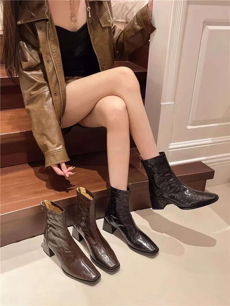 🍒樱桃四星🌟【侧拉链粗跟短靴】限量1000单💰129❗️终于等来加绒款❗️哭着求来的福利❗️