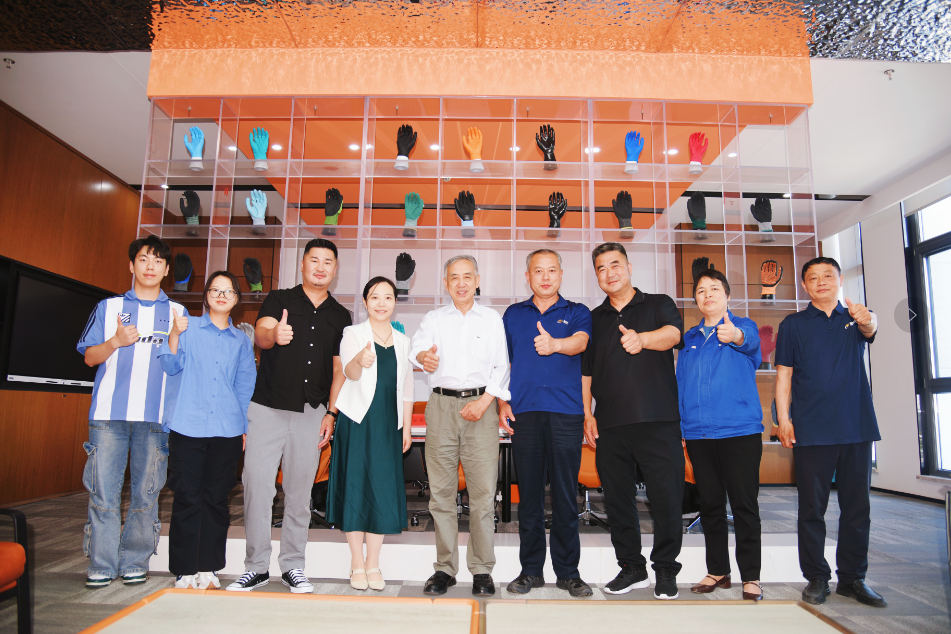 随后,团队前往星宇安防公司。星宇安防科技集团股份有限公司始创于 1992 年,有劳动防护手套、医疗防护手套、特种纤维、合成胶乳四大产业板块。在参观过程中,团队深入生产车间,实地考察了自动化生产流程与先进设备。目前,星宇安防的智能化技术在生产全流程中得到广泛应用,AI 视觉检测系统已覆盖 80% 的浸胶生产线,检测准确率达到 99.5% 以上。在绿色转型方面,星宇安防通过工艺优化降低碳排放,并积极探索废弃物的资源化利用。星宇安防长期与东华大学化学纤维研究所联合共建 “星宇 - 东华特种纤维及其制品研发中心”。