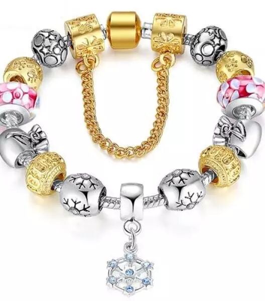 潘多拉手链的组成也很讲究:有基础链、安全链、固定扣、隔珠、串珠、吊坠;每一个小细节都可以精心设计,上千款珠饰可以选择搭配。入门级的基础是一条手链,有三种材质,925纯银,14ct金,以及真皮。一般分为17cm,19cm和21cm三种尺寸,串满的话大约为17颗珠子。从现在开始让我们串起每个人生的重要时刻,“串起生命中每一刻美好时光”。