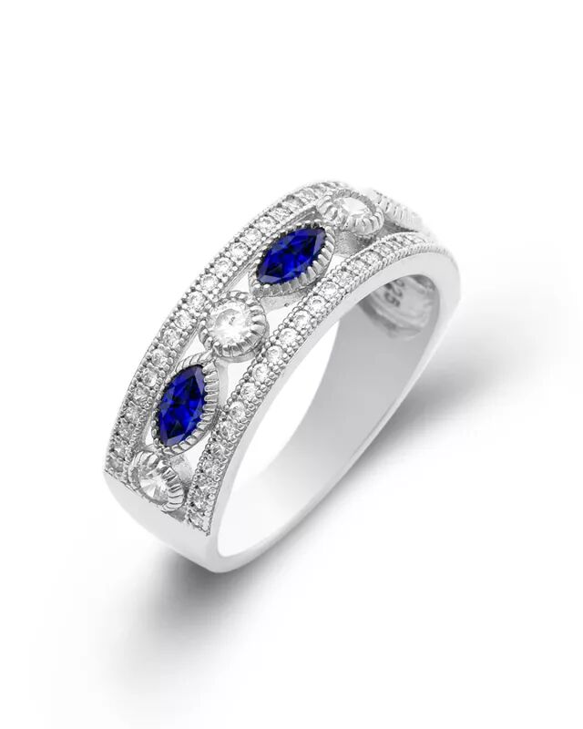 Bouton 宝蓝色晶钻混白色晶钻戒指 7#