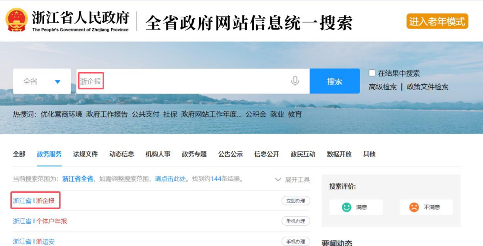 企业须登录“浙江政务服务网”(https:/zwfw.zj.gov.cn),在首页搜索栏中搜索“浙企报”,经法人账号登录后,在线填报《高新技术企业统计表》。