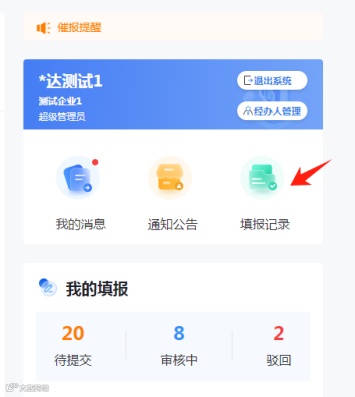 首页点击“填报记录”模块,即可跳转到历史数据列表页面,将往期历史数据进行导出查看。