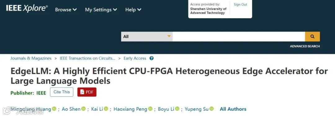 近日,中国科学院深圳先进技术研究院医学成像全国重点实验室、医工所医学人工智能研究中心黄明强团队在大模型AI芯片领域取得重要进展,其研究成果在电路与系统领域顶级期刊IEEE Transactions on Circuits and Systems I: Regular Papers上在线发表,论文题目为"EdgeLLM: A Highly Efficient CPU-FPGA Heterogeneous Edge Accelerator for Large Language Models"。该研究成功攻克人工智能大语言模型(LLM)在资源受限边缘设备部署的核心难题,为智能机器人、便携设备等场景的实时AI应用提供了创新解决方案。