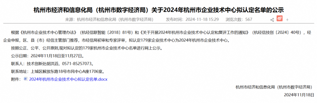 菜鸟智谷产业园入驻企业:浙江微特电子信息有限公司技术中心成功通过2024年杭州市企业技术中心认定。