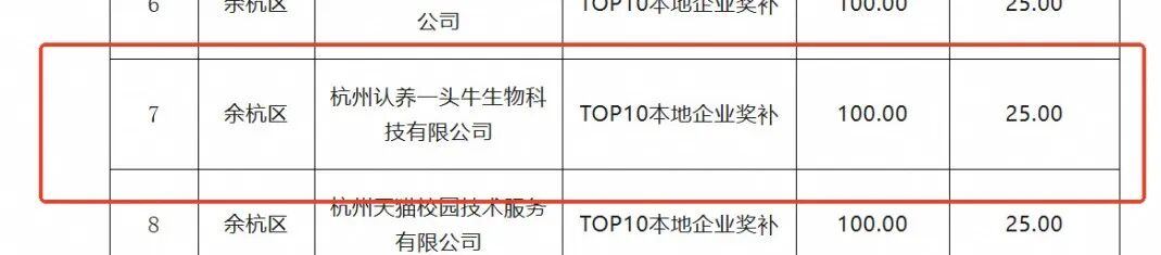 菜鸟智谷产业园入驻企业:杭州认养一头牛生物科技有限公司成功通过获得2024年杭州市新电商发展专项资金奖补。