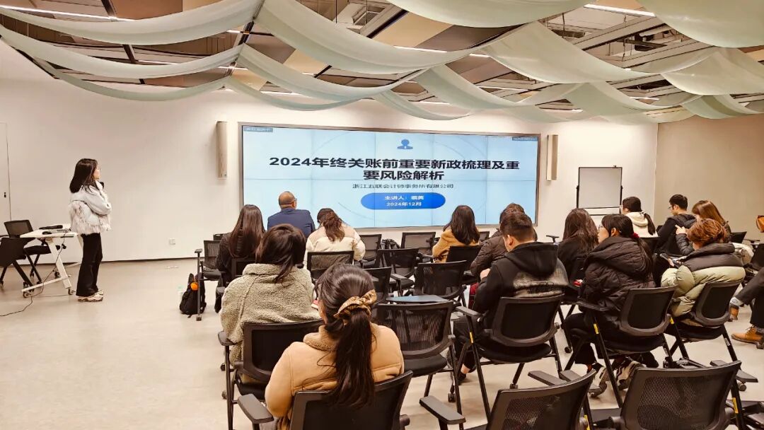 随后,浙江五联会计师事务所裘英老师以把握2024年终关账汇算清缴的主要风险点为主题,从新《会计法》变化点及对财务人员的影响、2023年-2024年重要税收政策梳理及实务解析、企业借款税收税务风险专题分析三个角度展开分享。