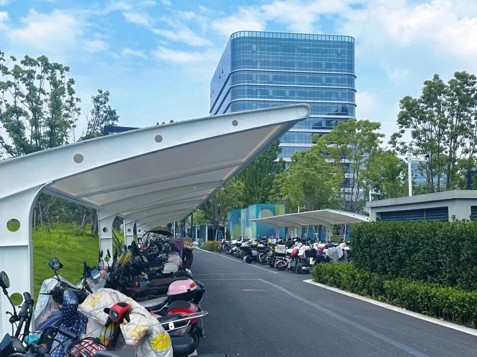 更主动出资建膜结构的停车雨棚