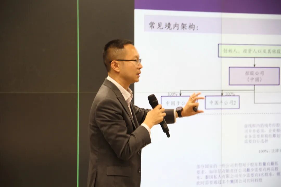 随后由全球知名律师事务所摩根路易斯律师事务所香港办公室合伙人何伟信及北京办律师郑丽娜一同为大家分享了“海外投资法律风险防范”。何伟信律师分享了企业在海外业务拓展过程中需关注的架构搭建,特别指出搭建合适的境外架构对企业全球化发展至关重要。