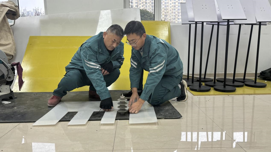 在万家灯火的温馨背后,是一群电力人默默耕耘的身影,他们用智慧与汗水编织着城市的光明与温暖。在这不为人知的角落里,一对师徒正沉浸在一项挑战中——创新制作柱上开关隔离挡板。这个装置,虽不起眼,却能大大降低绝缘遮蔽的工作负担,有效规避相间、相地短路的风险,为电力作业的安全增添一道坚实的防线。