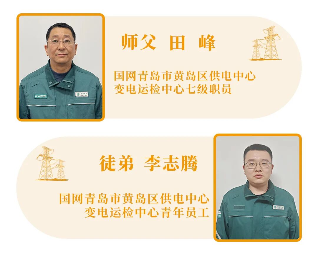 田峰作为黄岛公司的老员工,始终以勤勉尽责的态度深耕于电力事业,经由岁月的磨砺与实践的锤炼,积淀了深厚的专业知识与丰富的实战经验,多次荣获国网青岛市黄岛区供电公司先进工作者等荣誉称号。春风又绿江南岸,育才之心不曾闲。在自我精进的同时,田峰更将心血倾注于青年一代的培养中,成为徒弟们心中坚实的守护者。2022年,新入职的李志腾在田峰的带领下,经过两年的不懈努力,逐渐从一名新手成长为能够独当一面的运维人。