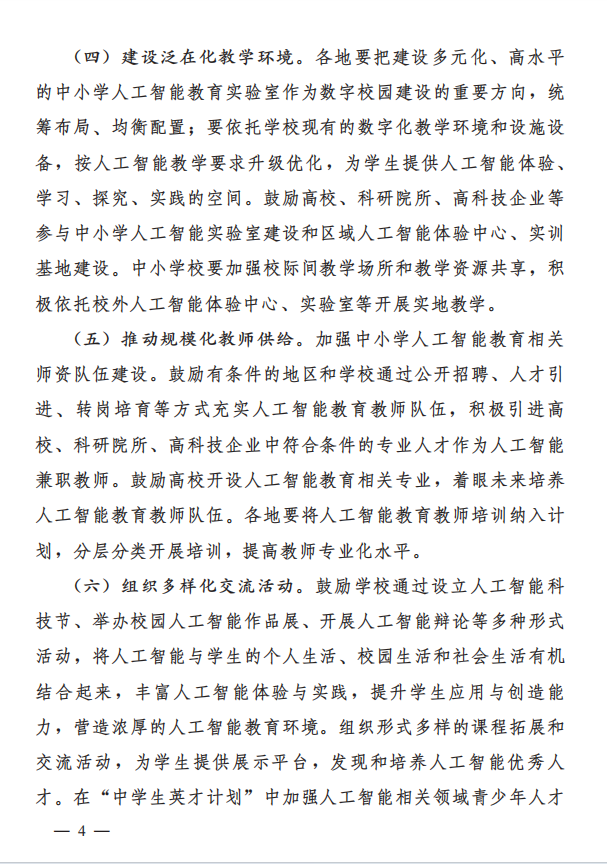 2.优化教学评价:统筹课程实施,避免与人工智能课程重复交叉。加强人工智能教育研究,单设评选类别。将人工智能素养纳入学生综合评价和义务教育质量监测。