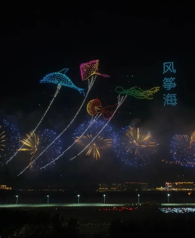 当无人机与空中焰火相遇