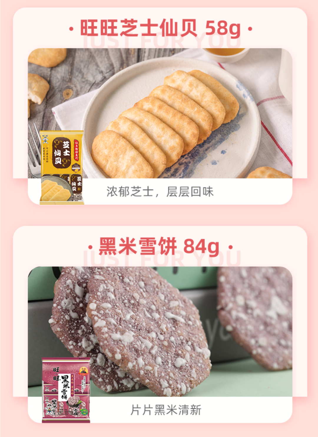 不过这些“永不过时”的零食似乎也不是完全一成不变:仙贝“进化”成为“芝士仙贝”,雪饼则被“晒黑”成了“黑米雪饼”。