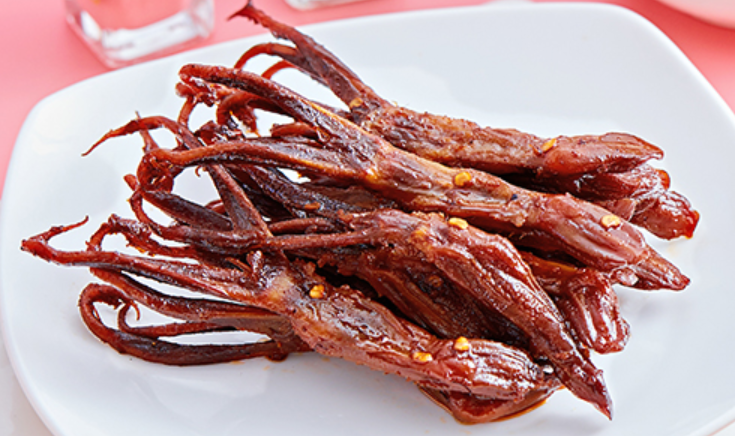 从鸭脖开吃,经过跟骨头的一番艰难斗争,把所有可嚼的部分咬个遍,感叹一下肉吃不够;接着就拿起难度系数低一些的翅中抚慰心灵;然后是鸭掌、鸭胗、鸭舌在欲求不满和一口满足之间摇摆;留最简单粗暴的鸭肉干作结尾升华。