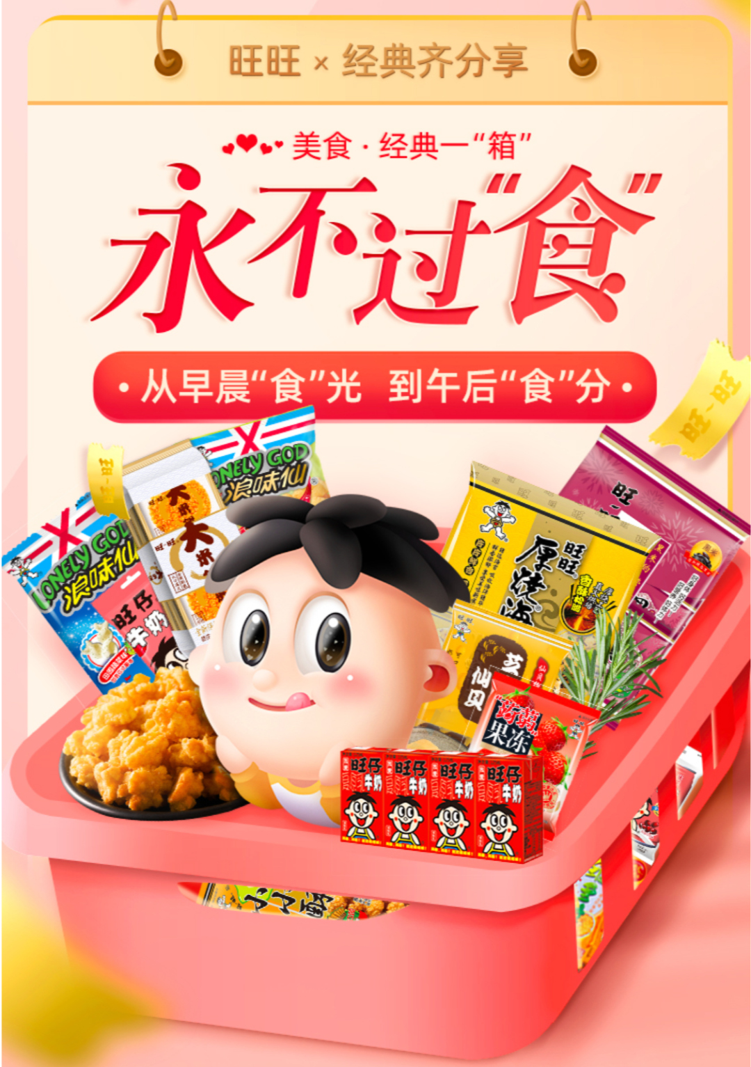 言归正传,“经典零食”名实相符:仙贝、雪饼、小小酥、大米饼、浪味仙,旺仔牛奶…不需要向90后再介绍这些,它们连包装都是当年的样子。不追潮流、不当网红,旺旺近乎固执地坚守着其它品牌无法复刻的独特滋味,在人的记忆里细水长流。