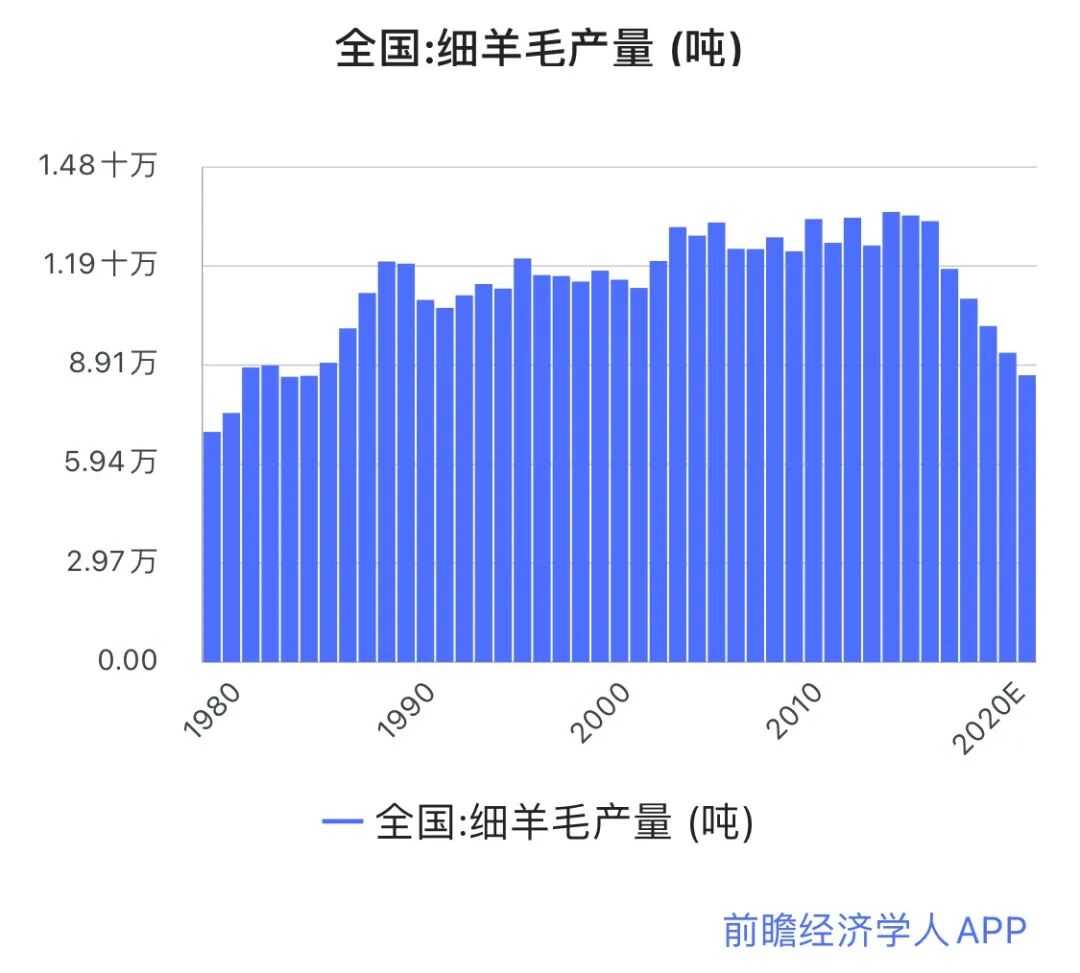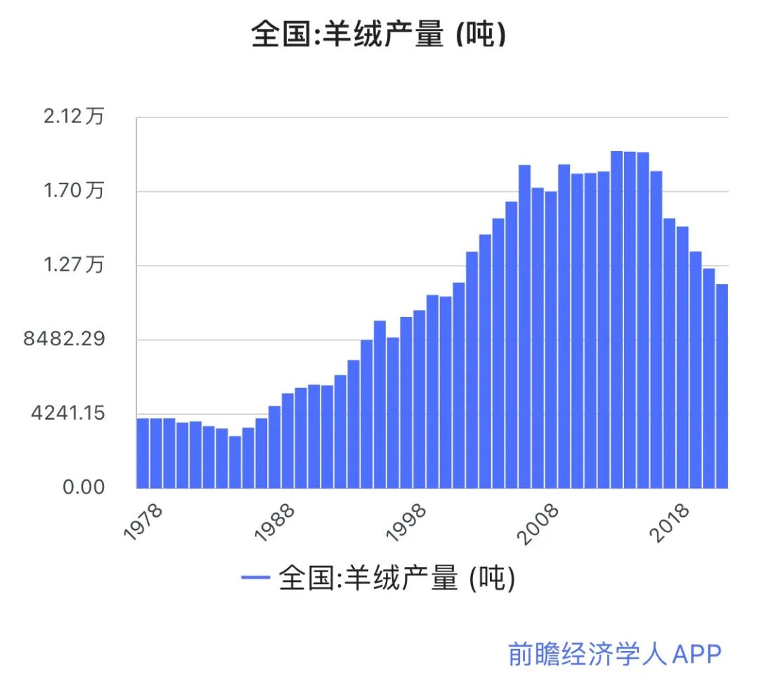 据统计,2019年全国羊毛产量在10万多吨左右,而羊绒大约为1万5千吨左右。2017年的时候,中国羊绒产量占全球的比重的80%以上,这足以说明羊绒的珍贵性。