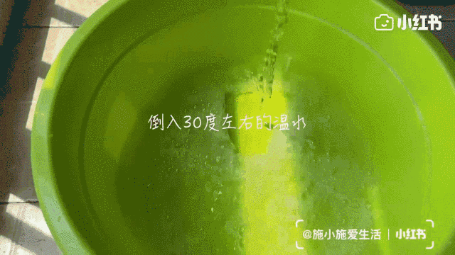 盆中加入10ml洗衣液,倒入30度左右的温水4L。