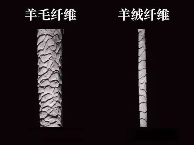 从图片中也可以看出羊绒纤维更加的光滑,齿距感比羊毛纤维弱很多,这也足以说明羊绒的手感是佳于羊毛的。