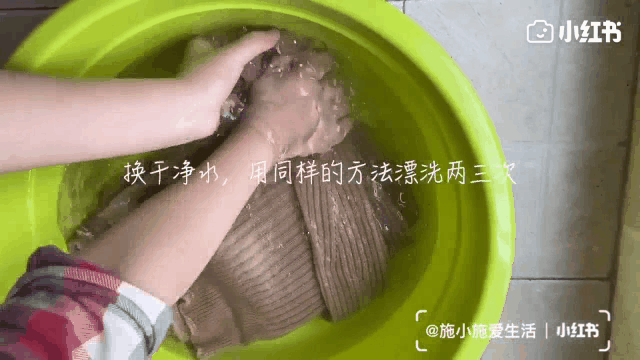 放入衣服,用按压的方式清洗,每个角落按压10次左右,中间也按压10次,袖口等比较脏的部位多抓洗几次。