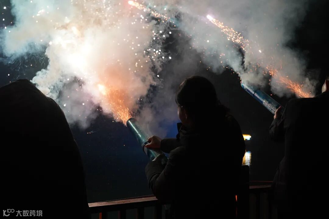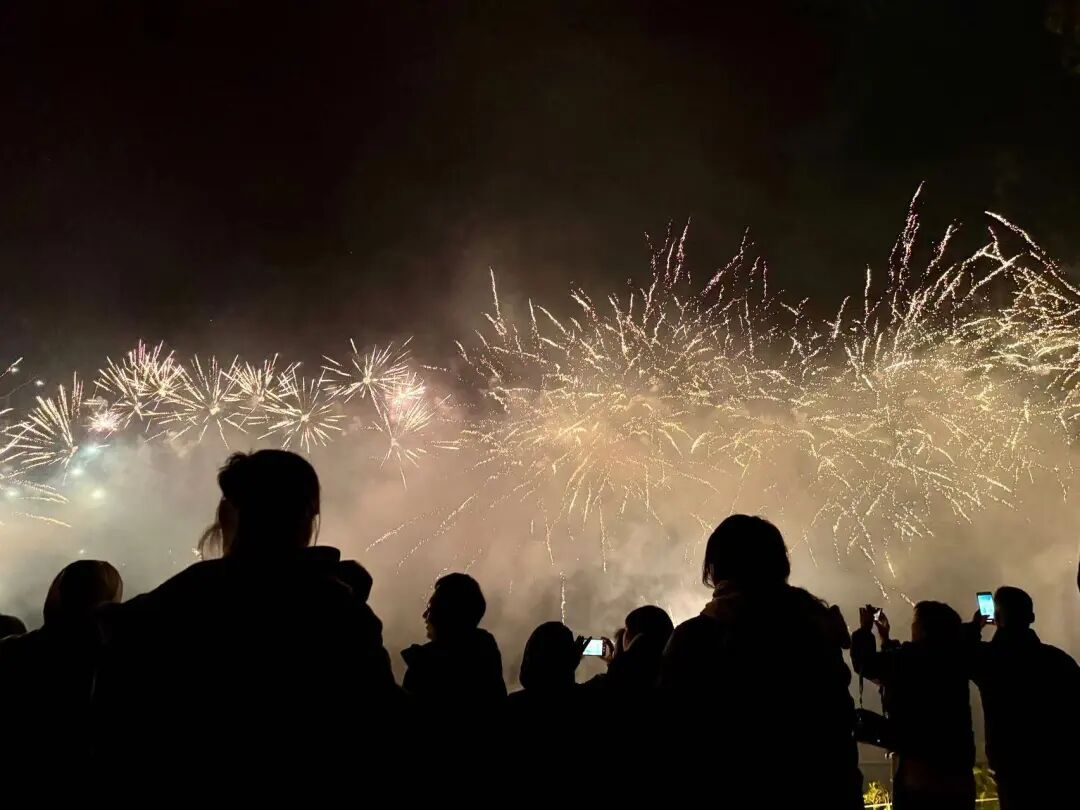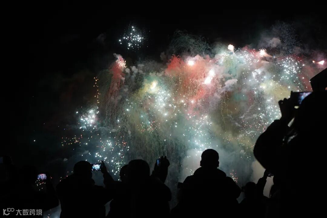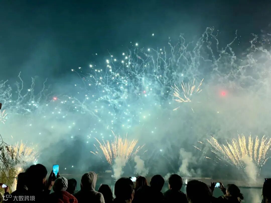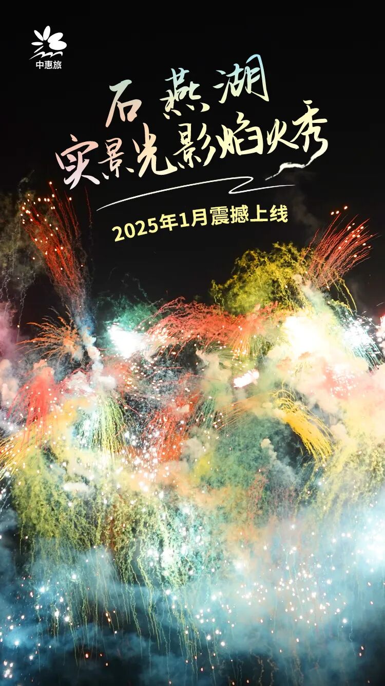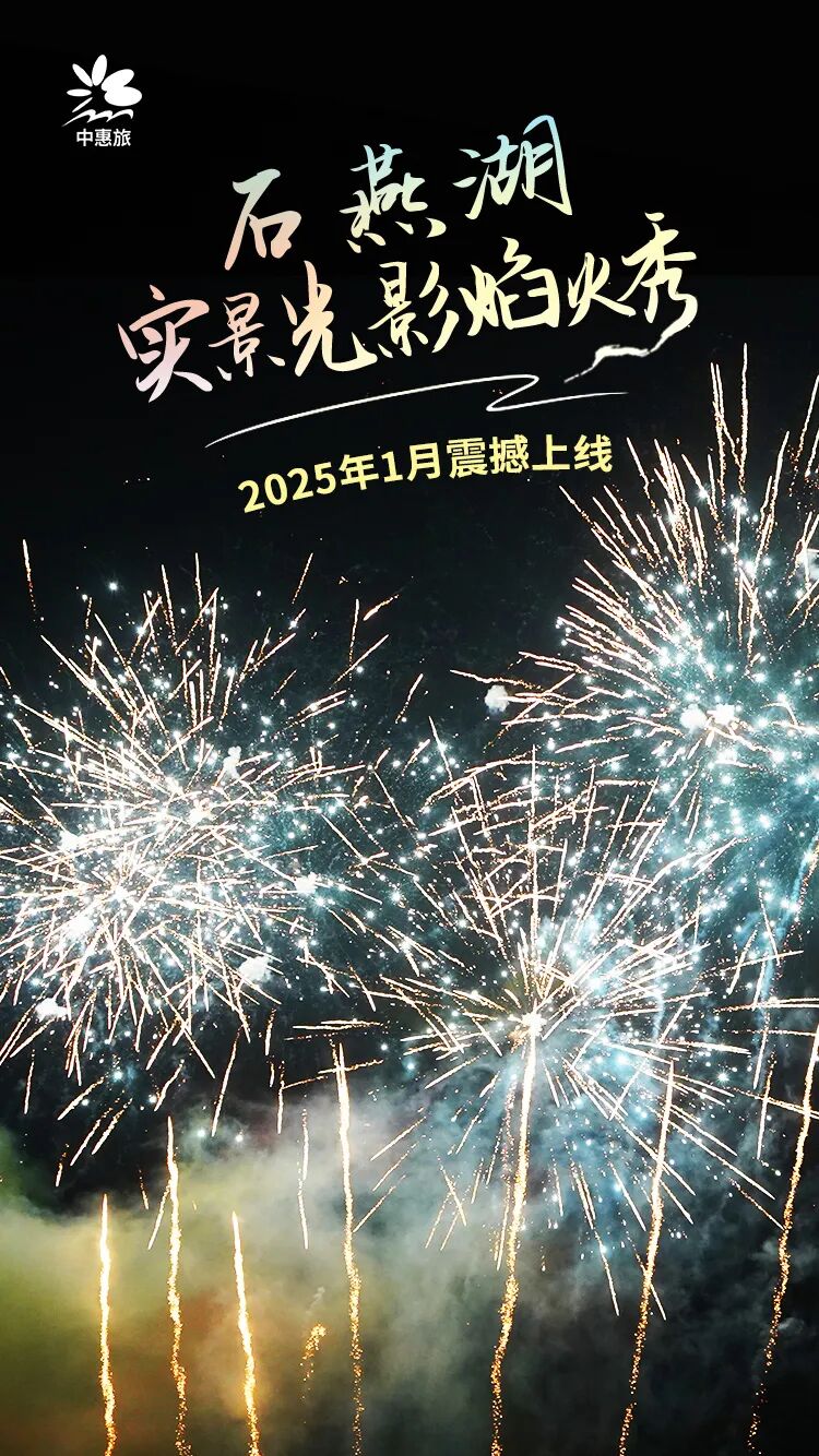 色彩斑斓、造型各异的烟花点亮整个石燕湖