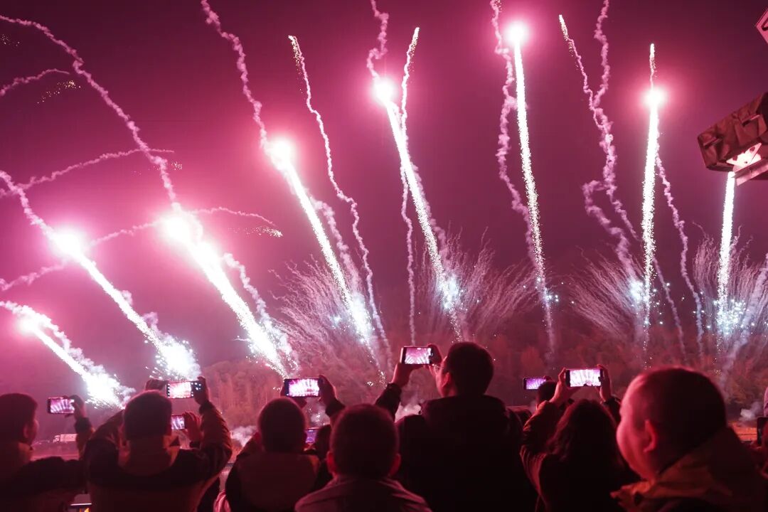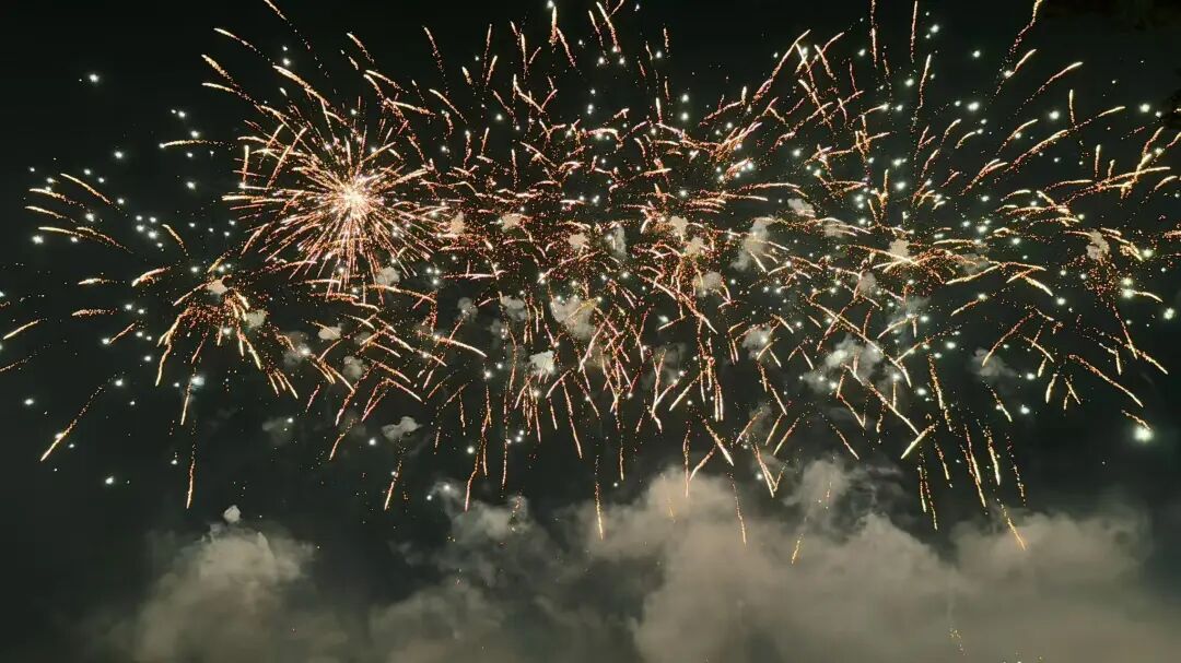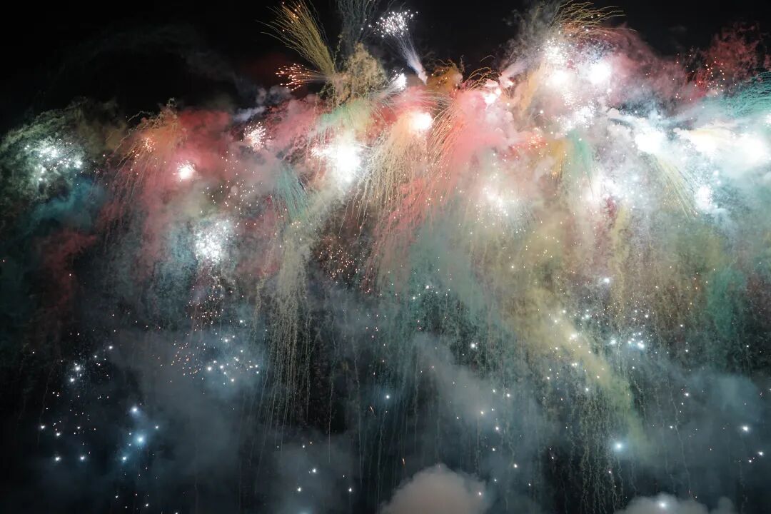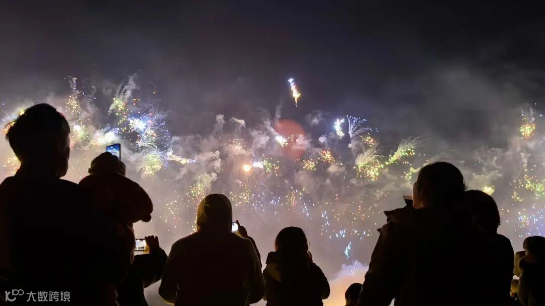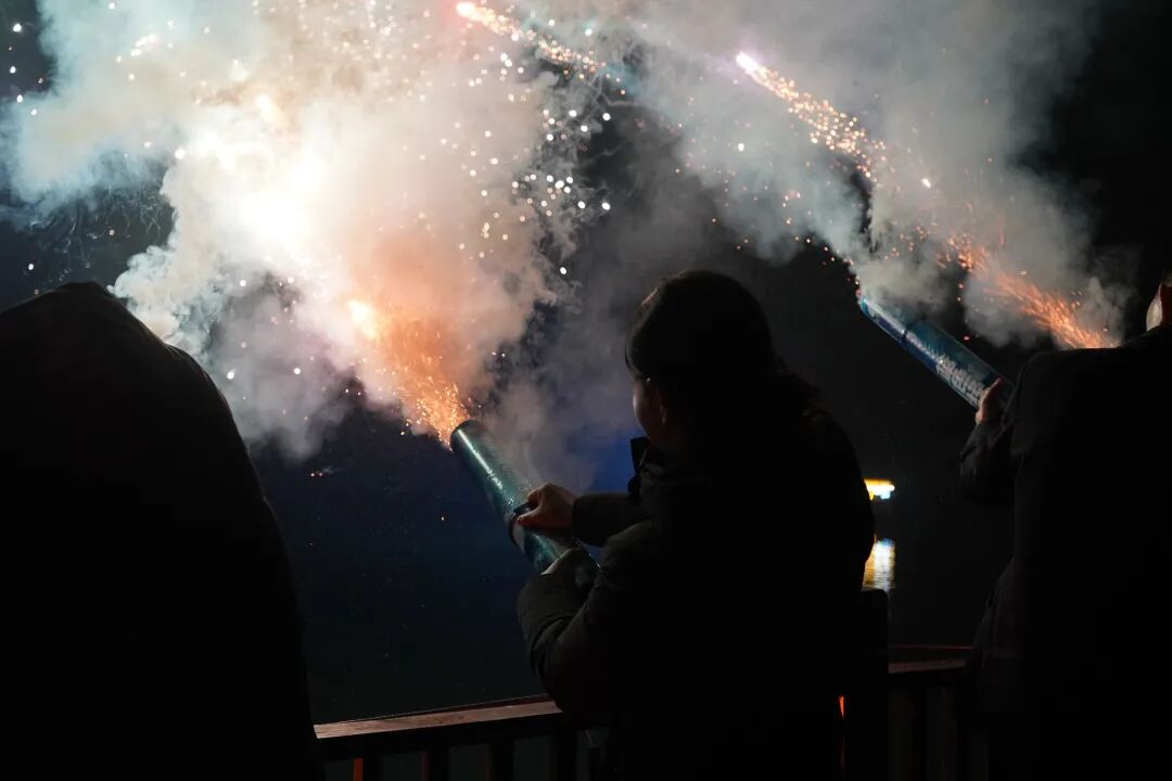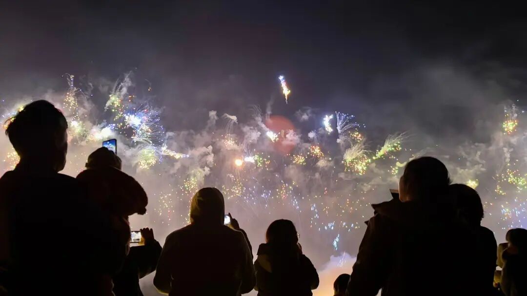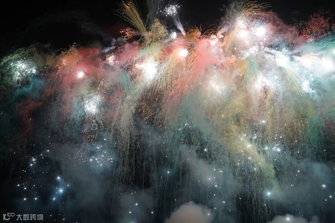 色彩斑斓、造型各异的烟花点亮整个石燕湖