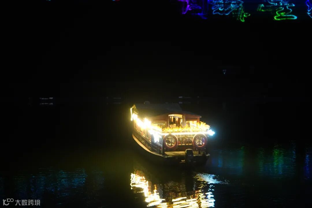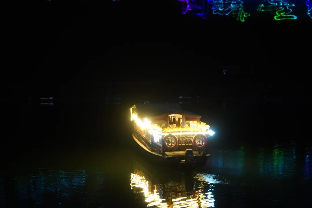 粼粼的湖面在灯光照耀下显得愈加美丽