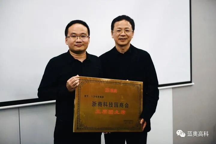 浙商科技园商会会长、蓝奥控股集团有限公司董事长 刘日益(左);八方电信集团董事长 叶天云(右)