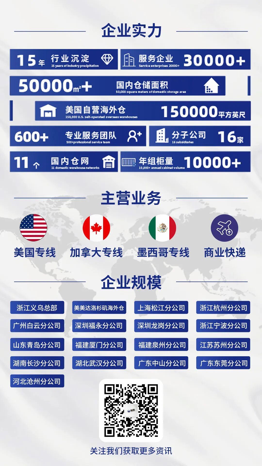 海外仓:15万平方英尺自营仓(美国洛杉矶/美东/美西、加拿大、墨西哥)