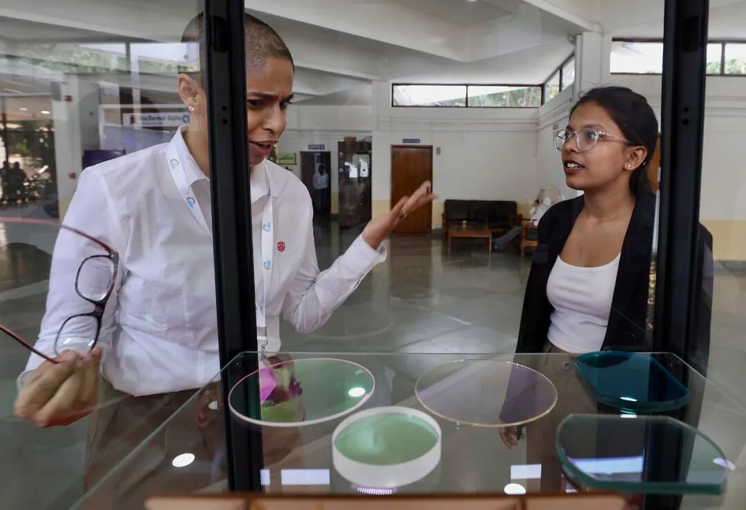 当地时间2025年3月27日,印度班加罗尔,参观者在“印度首届纳米电子路演”展位前获取信息。