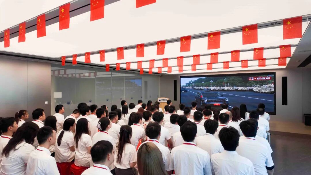 八十载风雨兼程,中华民族以铮铮铁骨战强敌、以血肉之躯筑长城。观看现场,员工们精神抖擞,激动不已;阅兵场上,徒步方队步伐铿锵,装备方队铁流滚滚,空中梯队划破长空。这一切展现的大国风范,让大家倍感骄傲与自豪,纷纷表示:“看到国家这么强大,我们做跨境也更加底气十足!”
