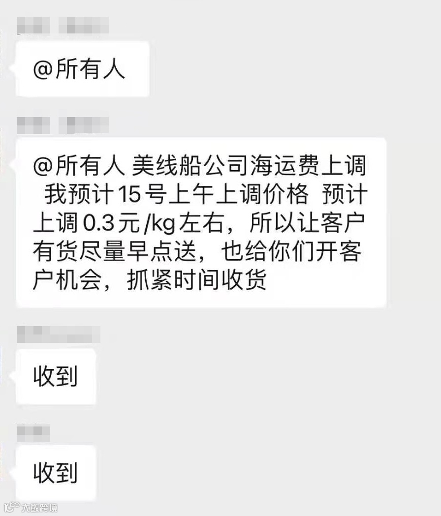 近期,有大量的跨境物流公司已经发布涨价通知,有货代表示美线海运在4月15日以后价格全面上涨500-1000USD,客户有货的可以早点出。
