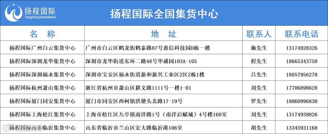 扬程国际国内共有8处集货中心,其中浙江省范围内的杭州萧山集货中心仍能正常收货出货,广州/深圳的三处集货中心现正常运作。上海、厦门和山东也做好时刻支援义乌的准备,确保跨境卖家正常收发货!