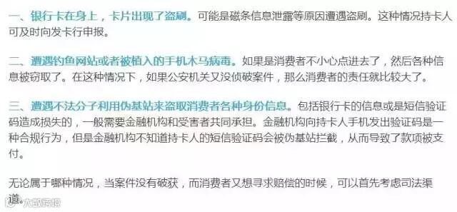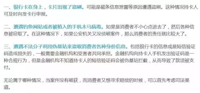 关于责任认定,根据不同的诈骗类型,有些情况属于需要持卡人承担损失,有些则由银行代为承担损失,大致可分为以下几种↓↓