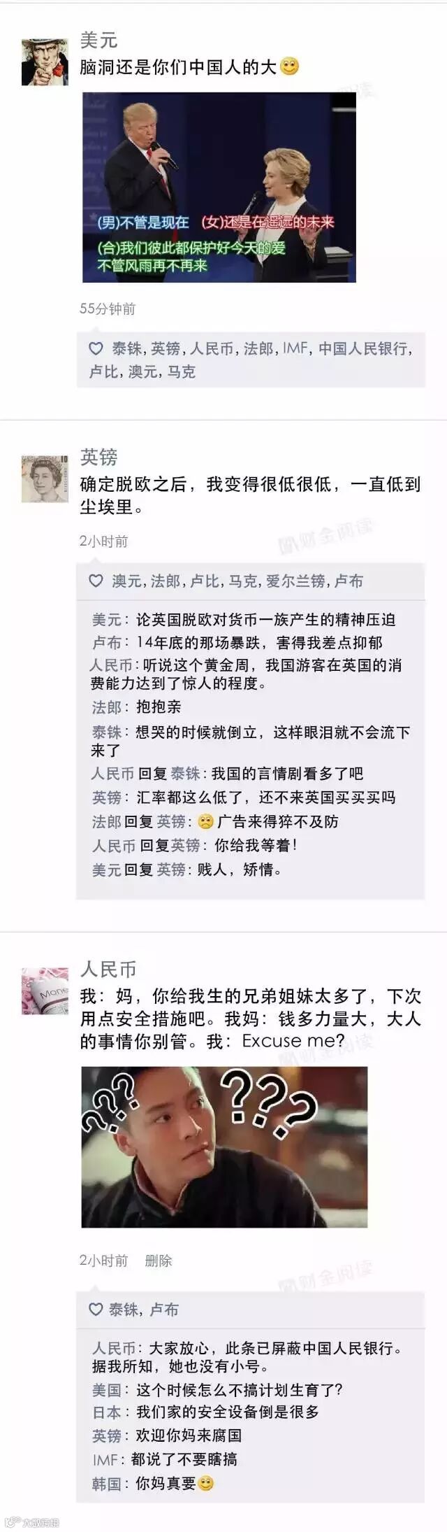(货币角色纯属虚构,看得开心还请转发。毕竟,你和人民币是彼此的最爱。)